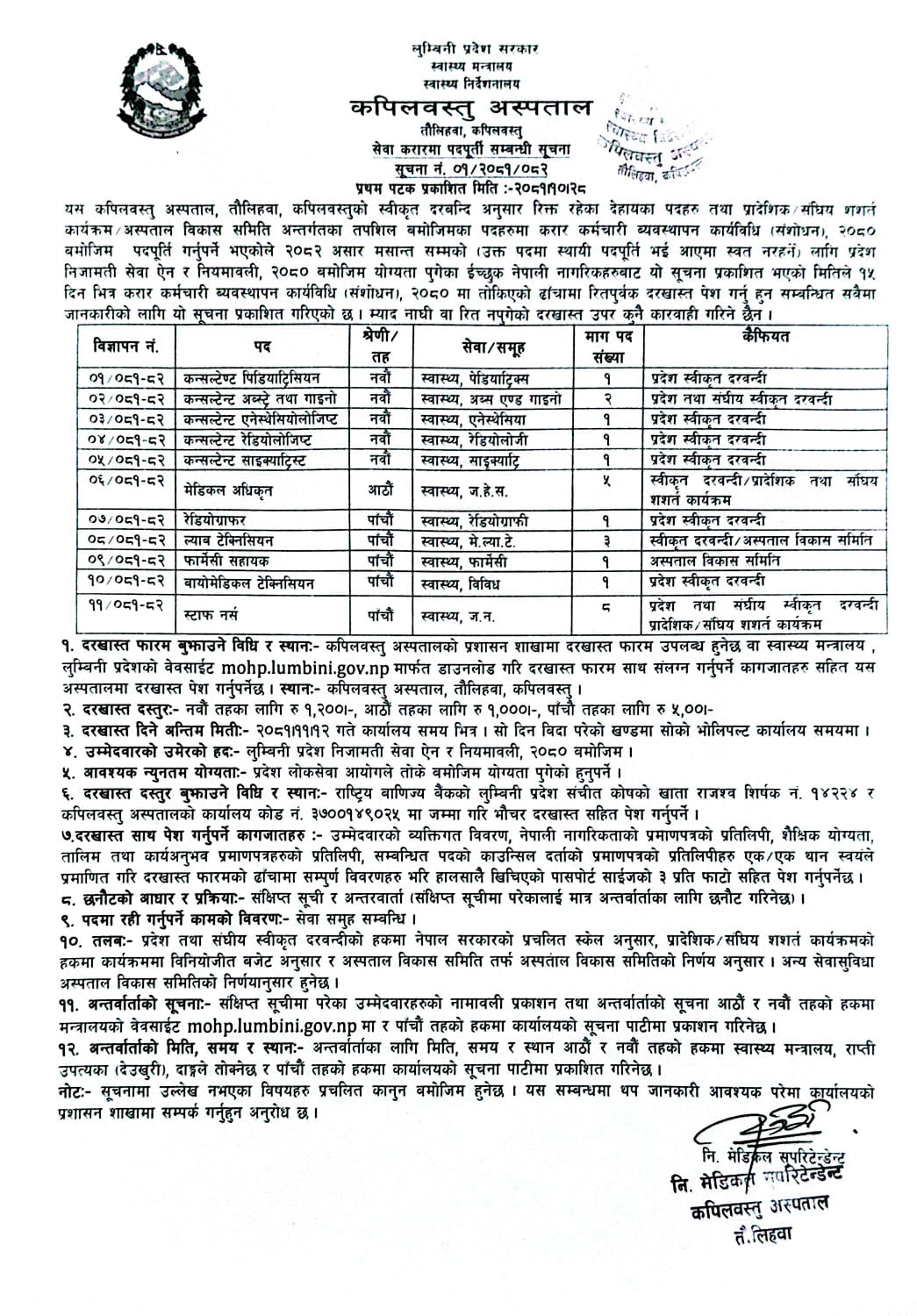 नागरिक वडापत्र(Citizen Charter) सेवा करारमा पदपूर्ती सम्बन्धी सूचना February 18, 2025 11:15 am निमित्त मेडिकल सुपरिटेन्डेन्ट राकेश कुमार साह सूचना अधिकारी: रत्नाकर शुक्ला 9857051054 क्र.स सेवाको प्रकार समय शुल्क रु जिम्मेवारी गुनासो सुन्ने व्याक्ति कैफियत १ नाम दर्ता( OPD) ९:०० बजे देखि १:०० बजे सम्म २० फाँट प्रमुख कार्यालय प्रमुख २ नाम दर्ता (Emergency) २४ सै घण्टा ३० फाँट प्रमुख कार्यालय प्रमुख ३ बिरामी जाँच (OPD) बिहान १० बजे देखि ३ बजे सम्म फाँट प्रमुख कार्यालय प्रमुख ४ औषधी वितरण २४ सै घण्टा औषधी अनुसार फाँट प्रमुख कार्यालय प्रमुख ५ पोष्टमार्टम सेवा कार्यालय समय भित्र निःशुल्क फाँट प्रमुख कार्यालय प्रमुख ६ ARV VACCINE कार्यालय समय भित्र १०० फाँट प्रमुख. कार्यालय प्रमुख अन्तरंग तथा आक्स्मिक सेवा १ बिरामी भर्ना सेवा २४ सै घण्टा - फाँट प्रमुख. कार्यालय प्रमुख २ बेड चार्ज जनरल २४ सै घण्टा ५० फाँट प्रमुख. कार्यालय प्रमुख ३ बिरामी जाँच (Emergency) २४ सै घण्टा - फाँट प्रमुख. कार्यालय प्रमुख ४ BIRTH CERTIFICATE CHARGE २४ सै घण्टा निःशुल्क फाँट प्रमुख. कार्यालय प्रमुख ५ CATHETERIZATION २४ सै घण्टा ५० फाँट प्रमुख. कार्यालय प्रमुख ६ FREEZER FEE\ MARTURY CHARGE २४ सै घण्टा ५०० फाँट प्रमुख. कार्यालय प्रमुख ७ HEALTH CERTIFICATE कार्यालय समय भित्र ३०० फाँट प्रमुख. कार्यालय प्रमुख ८ ECG २४ सै घण्टा २०० फाँट प्रमुख. कार्यालय प्रमुख ९ OXYGEN PER HOUR २४ सै घण्टा ३० फाँट प्रमुख. कार्यालय प्रमुख १० SUTURE(Small/Medium/Large) कार्यालय समय भित्र ५०/१५०/५०० फाँट प्रमुख. कार्यालय प्रमुख ११ SUTURE OUT) कार्यालय समय भित्र ५० फाँट प्रमुख. कार्यालय प्रमुख १२ DRESSING (Small/indermediate) कार्यालय समय भित्र ५०/१०० फाँट प्रमुख. कार्यालय प्रमुख १३ I & D GA) कार्यालय समय भित्र ५०० फाँट प्रमुख. कार्यालय प्रमुख १४ I & D SMALL) कार्यालय समय भित्र ५० फाँट प्रमुख. कार्यालय प्रमुख १५ I & D INTERMIDIATE कार्यालय समय भित्र १०० फाँट प्रमुख. कार्यालय प्रमुख डेण्टल सेवा १ COMPOSITE RESTORATION कार्यालय समय भित्र ५०० फाँट प्रमुख. कार्यालय प्रमुख २ DENTAL SURGERY कार्यालय समय भित्र ५०० फाँट प्रमुख. कार्यालय प्रमुख ३ EXTRACTION कार्यालय समय भित्र ३०० फाँट प्रमुख. कार्यालय प्रमुख ४ SCALLING & POLISHING कार्यालय समय भित्र ५०० फाँट प्रमुख. कार्यालय प्रमुख ५ SUTURING DENTA कार्यालय समय भित्र ३०० फाँट प्रमुख. कार्यालय प्रमुख ६ I & D कार्यालय समय भित्र ३०० फाँट प्रमुख. कार्यालय प्रमुख ७ DENTAL X-RA कार्यालय समय भित्र २०० फाँट प्रमुख. कार्यालय प्रमुख ८ CLASS 1 COMPOSITE कार्यालय समय भित्र ४०० फाँट प्रमुख. कार्यालय प्रमुख ९ CLASS 2 COMPOSITE कार्यालय समय भित्र ८०० फाँट प्रमुख. कार्यालय प्रमुख १० GIC CEMENT) कार्यालय समय भित्र ३०० फाँट प्रमुख. कार्यालय प्रमुख ११ GIC RESTORATION) कार्यालय समय भित्र ५०० फाँट प्रमुख. कार्यालय प्रमुख १२ SUTURING DENTAL कार्यालय समय भित्र ५०० फाँट प्रमुख. कार्यालय प्रमुख १