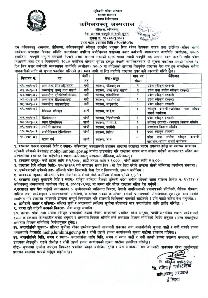 सेवा करारमा पदपूर्ती सम्बन्धी सूचना